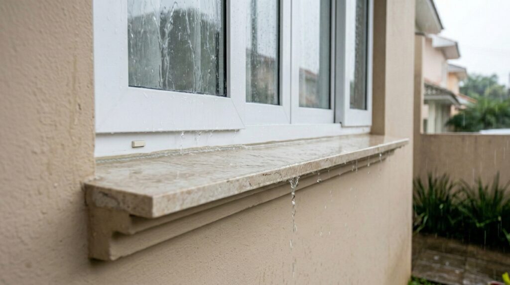 Verifique se todas as janelas possuem pingadeiras (peitoris externos inclinados). Essas peças direcionam água para longe da parede, evitando manchas e infiltrações. Em reformas ou instalações novas, pingadeiras de alumínio ou concreto são essenciais para regiões úmidas.